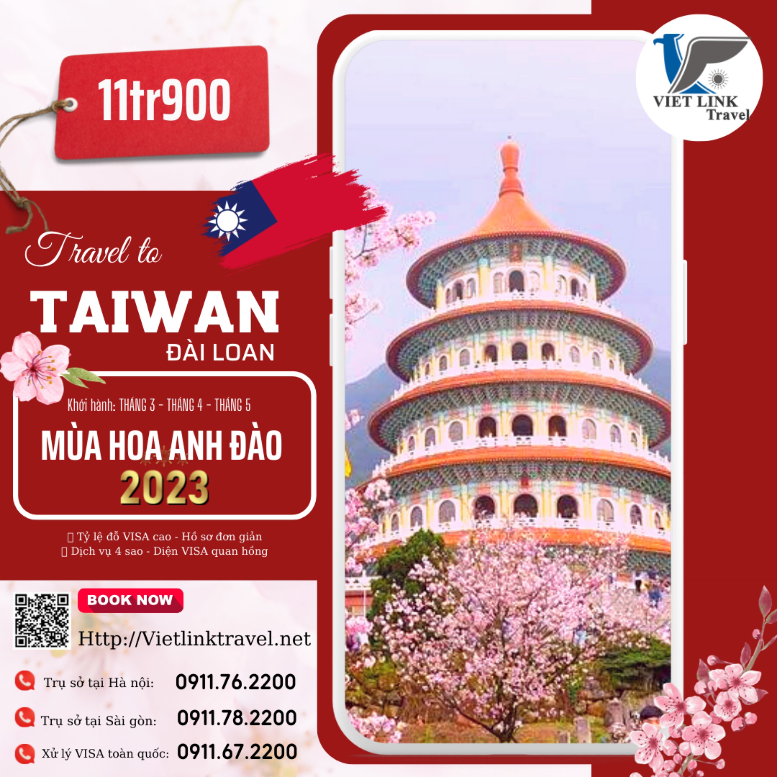 Du Lịch Đài Loan Mùa Hoa Anh Đào Tháng 2,3,4