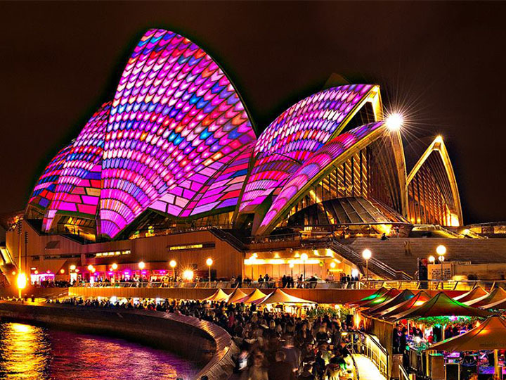 • Nhà hát Sydney Opera Housebiểu tượng của nước Úc, có kiến trúc cực kỳ ấn tượng và nổi tiếng của Sydney với ba mặt hướng ra biển.